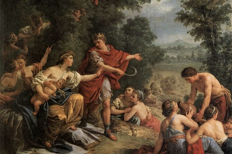 “데메테르의 은혜를 입은 그는 굽은 쟁기로 흙덩이를 뒤집고 작물의 씨앗을 뿌리고 사람들에게 빵을 주었다.”
